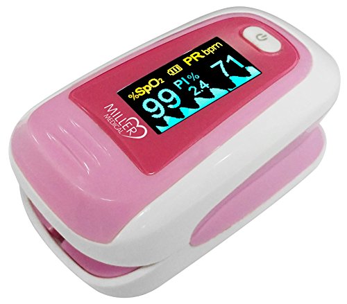 Pulsossimetro digitale con schermo OLED adatto sia per adulti che per bambini / Sp02 / frequenza cardiaca / indice di perfusione, con batterie e cordoncino, colore rosa