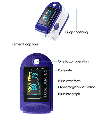 Pulsossimetro da Dito, Saturimetro Portatile Professionale, Display OLED per Frequenza Del Polso e La Saturazione di Ossigeno, Blu