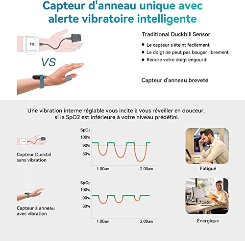 ✅ Facile da Indossare: il ossimetro SleepU è leggero, il sensore ad anello in silicone confortevole è morbido e non scivola facilmente, il tuo dito non si intorpidirà indossandolo per tutta la notte.
