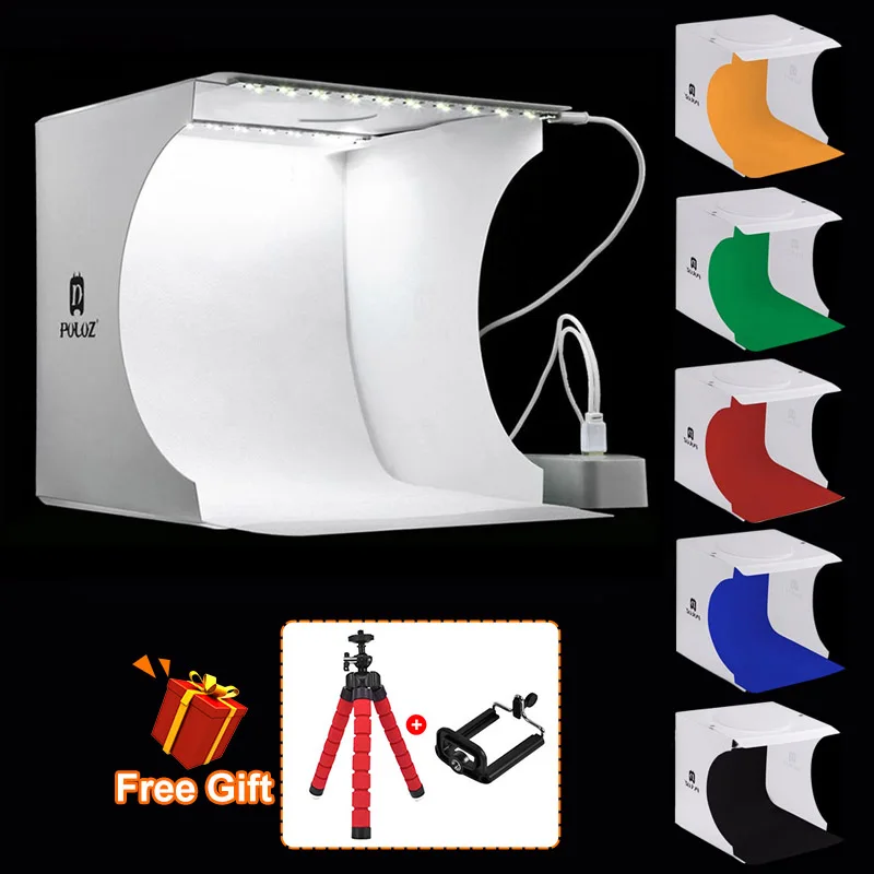 PULUZ 20*20cm 8 Mini Folding Studio Diffuse Soft Box Lightbox With LED Light Black White Photography Background Photo Studio box