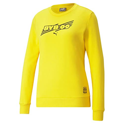 Puma 4063698861014 BVB FtblCore Crew Sweat W Maglione, L, Cyber Yellow/Puma Black