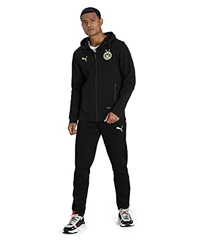 Puma 4063698899406 BVB Casuals Hooded Jacket wo Sponsor Maglione, L, Puma Black/Safety Yellow