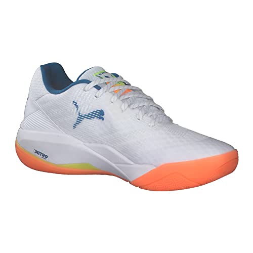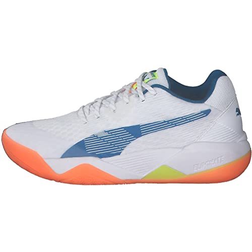PUMA Eliminate Power Nitro, Scarpe da ginnastica per ambienti interni, Unisex - Adulto, Puma White/Mykonos Blue/Yellow Alert/Neon Citrus, 42.5 EU