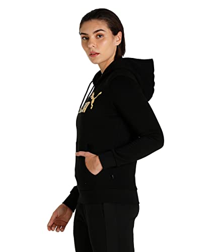 PUMA Felpa con Cappuccio Essentials+ con Logo Metallizzato da Donna XXS Black Gold Foil