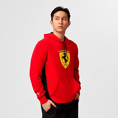 PUMA Felpa con Cappuccio Scuderia Ferrari Big Shield da Uomo L Rosso Corsa Red