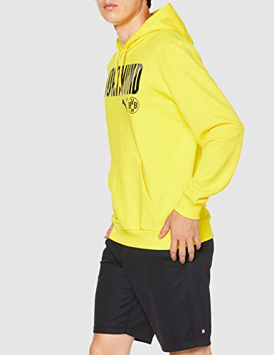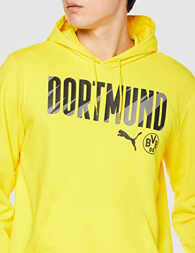 PUMA Felpa con Cappuccio da Uomo BVB Ftblcore Wording, Uomo, Pullover, 758091, Cyber Yellow-Puma Black, M