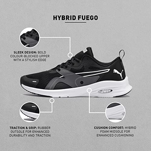 PUMA Hybrid Fuego, Scarpe da Corsa Uomo, Nero Black White, 44 EU