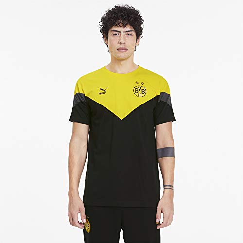 PUMA BVB Iconic MCS Tee, Maglietta Uomo, Black/Cyber Yellow, S