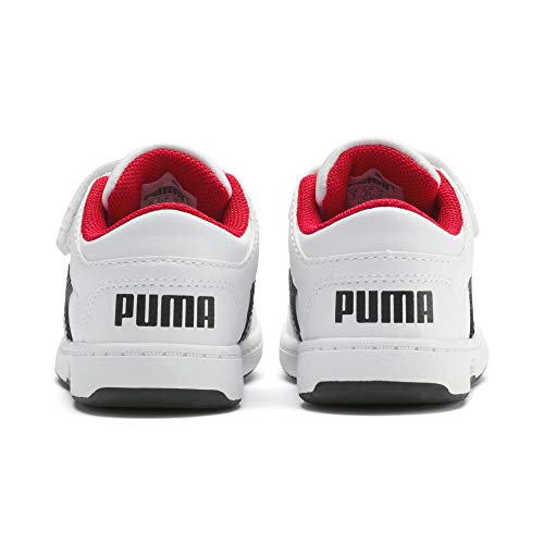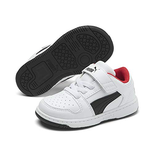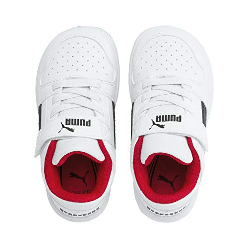 PUMA Pm Rebound Layup Lo SL V Inf, Scarpe da ginnastica, Unisex - Bimbi 0-24, Puma White/Puma Black/High Risk Red, 24 EU