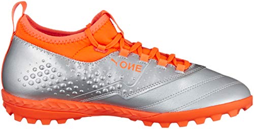 PUMA One 3 Lth TT, Scarpe da Calcio Uomo, Argento (Silber Silver Shocking Orange Black 01), 45 EU