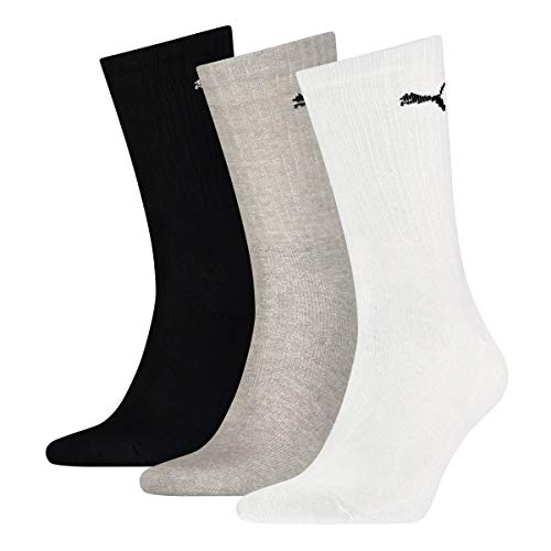 Puma Sport CREW LIGHTWEIGHT - Calze unisex da uomo, confezione da 6 pezzi, 35-38, 39-42, 43-46, 47-49, colore: nero, bianco, grigio, blu Bianco / grigio / nero 47-49