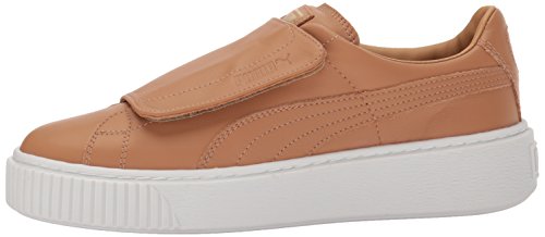 Puma Womens Basket Platform Strap Leather Low Top Pull On Fashion, Tan, Size 6.0