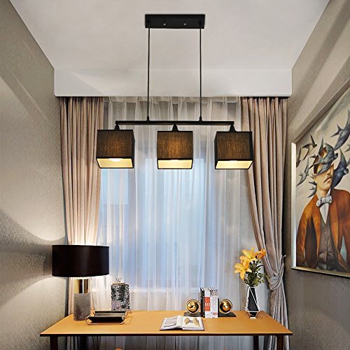 Pumpink Moderno minimalista tre rettangolare regolabile lampadario americano soggiorno plafoniera in tessuto appeso luce Nordic ristorante camera da letto lampade a sospensione (Color: Black)