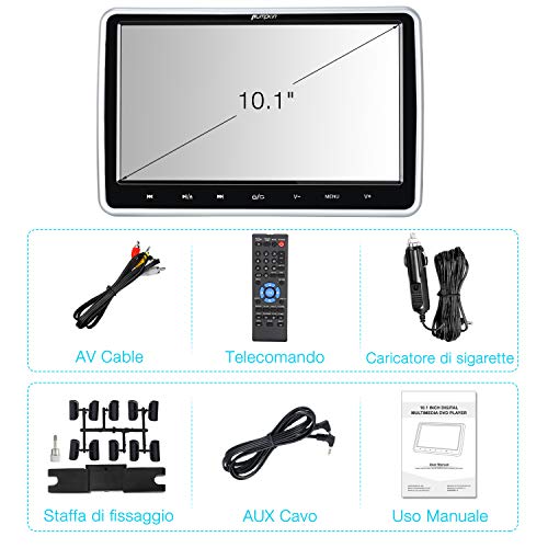 Pumpkin Lettore dvd auto per poggiatesta 10.1 pollici schermo, Regione free, Supporta USB/SD/AV-in/AV-out/cavo AUX, 18 mesi di garanzia