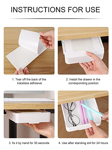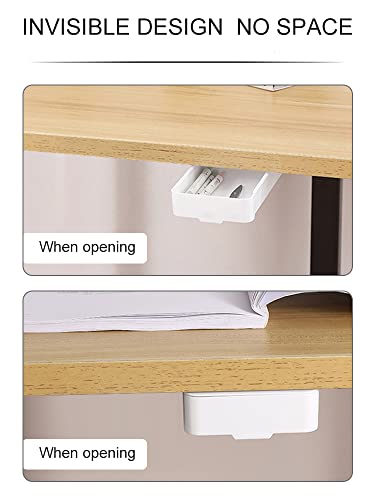 Punch Free Invisibile Cassetto Autoadesivo Sotto Scrivania Cassetto Nascosto Sotto Scrivania Cassetto Scatola di immagazzinaggio Plastica Organizzatore per Home Office Cucina (Bianco)