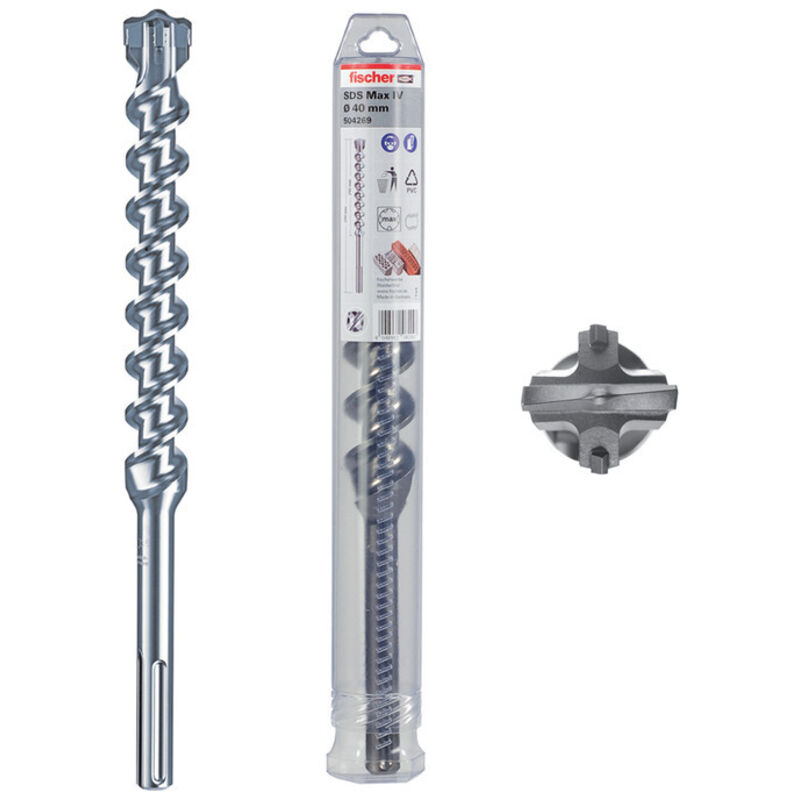 Punta per martello perforatore Fischer di alta qualità SDS Max IV 20/400/520 per la creazione di fori conformi alle norme in calcestruzzo, muratura e pietra naturale. Attacco SDS Max, 20 mm di diametro, 400 mm di diametro, 520 mm di lunghezza totale. La testa trapano a quattro lame impedisce l'aggancio nella armatura. La punta di centraggio consente una foratura semplice e precisa al punto. Il mandrino rinforzato con nucleo garantisce la massima trasmissione dell'energia e garantisce un comportamento di foratura a basse vibrazioni. L'elemento di taglio conforme a PGM ® garantisce fori precisi e soddisfa le più elevate esigenze di sicurezza.