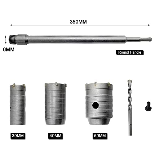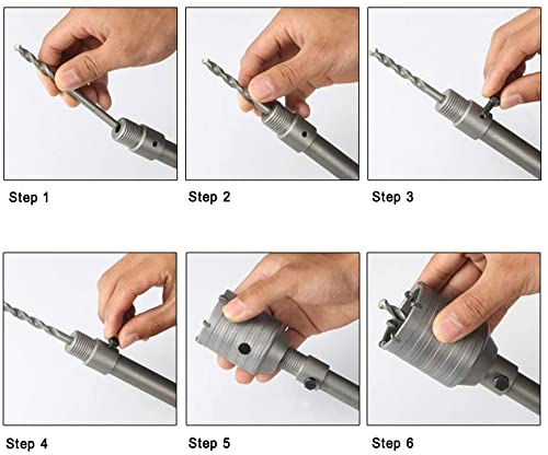Questo insieme include 30mm, 40mm, 50 mm punte nucleo, SDS + mandrini, trapani guida e 350mm SDS + gambo estensione.