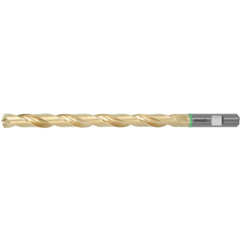 DescrizioneEsecuzione:Nocciolo robusto ed affilatura speciale, tagliente trasversale di elevata precisione.I taglienti principali diritti, con spigoli leggermente arrotondati, e la particolare forma delle scanalature producono trucioli corti.Nota:Lunghezza scanalatura per trucioli LC = L2 + 1,5 × DC.Per l'uso sicuro delle punte per fori profondi 12×D è necessario il precedente centraggio con n. art. 121068 - 121130 o un foro pilota 3×D con n. art. 122736.Dati tecnici ⌀ nominale DC 8,5 mm Profondità di foratura massima consigliata L2 107,3 mm Rivestimento TiN Materiale da taglio HMI Norma Norma interna Esecuzione 12×D Tolleranza ⌀ nominale h7 Numero taglienti Z 2 Angolo di affilatura 135 ° Codolo DIN 6535 HB con h6 Passaggio interno per LR sì, con 25 bar Necessaria una punta pilota sì, punta pilota Lunghezza scanalatura per trucioli Lc 120 mm Lunghezza complessiva L 162 mm ⌀ codolo Ds 10 mm Tolleranza codolo h6 Avanzamento f in acciaio < 1100 N/mm2 0,15 mm/U Colore collarino verde Tipo