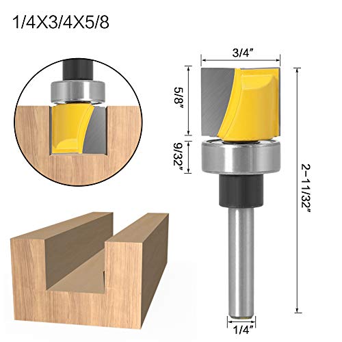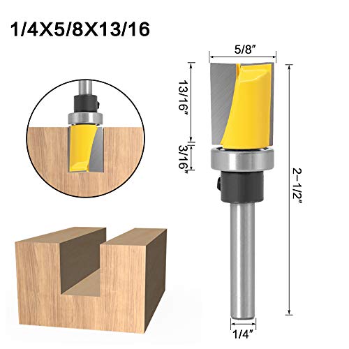 6PC 1/4"punta con codolo punta per rifilatura a filo punta diritta con cerniera per cuscinetto, fresa per mortasare, taglierina per legno
