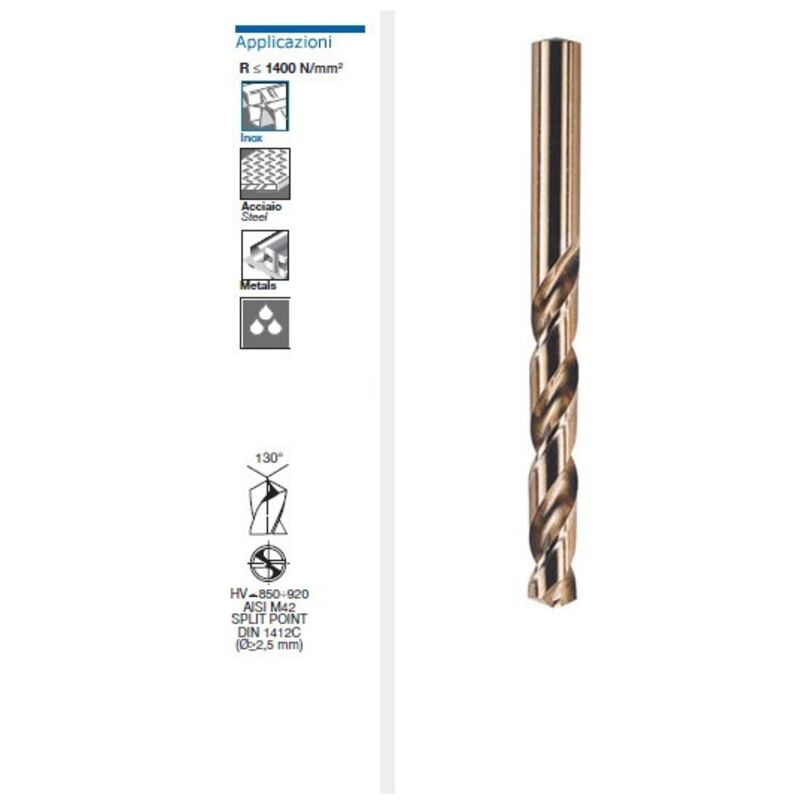 PUNTA AL COBALTO HSS MM.5,5 - CO 5% DIN 388 - RETTIFICATA data l'alta percentuale di cobalto è adatta alle lavorazione dell'acciaio inox e degli acciai alto legati, e delle leghe molto tenaci con R£ 1400 N/mm2