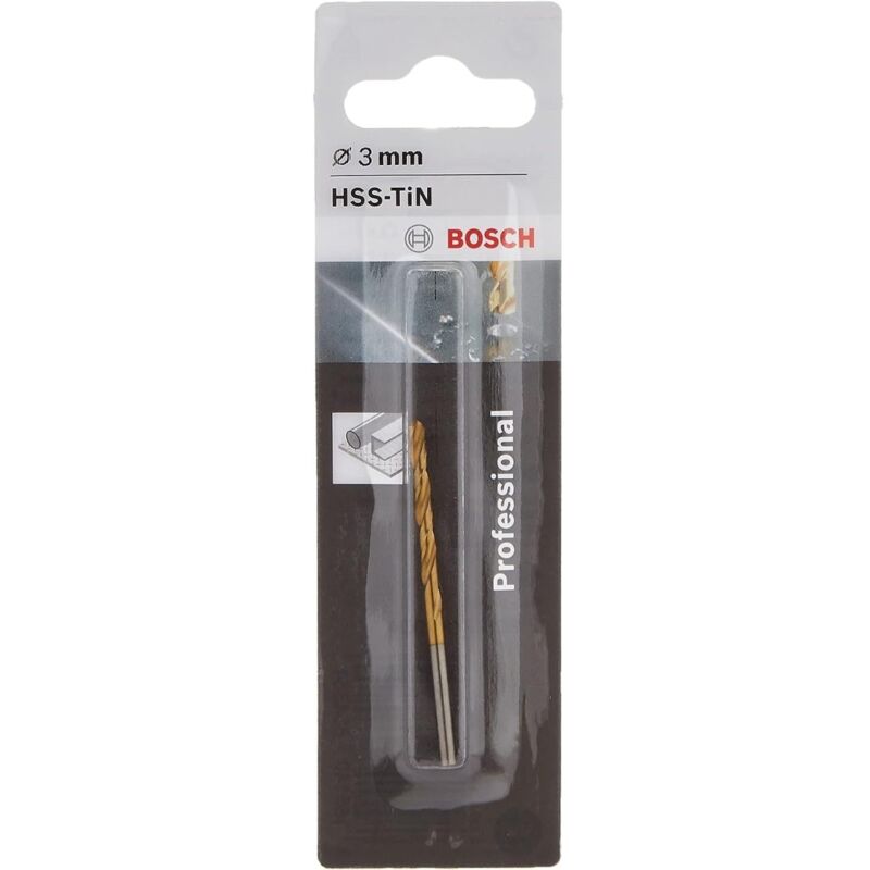 BOSCH - PUNTA METALLO HSS TIN 3X61MM Il rivestimento in nitruro di titanio garantisce un attrito molto basso e un'usura minima