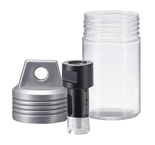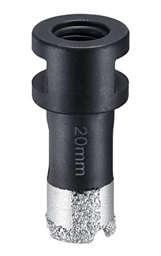 Il trapano per vetro e piastrelle ha un diametro di 20 mm, una lunghezza di 60 mm e una profondità di taglio di 40 mm. Può essere usato in tutte le smerigliatrici angolari disponibili in commercio con un mandrino filettato M14.