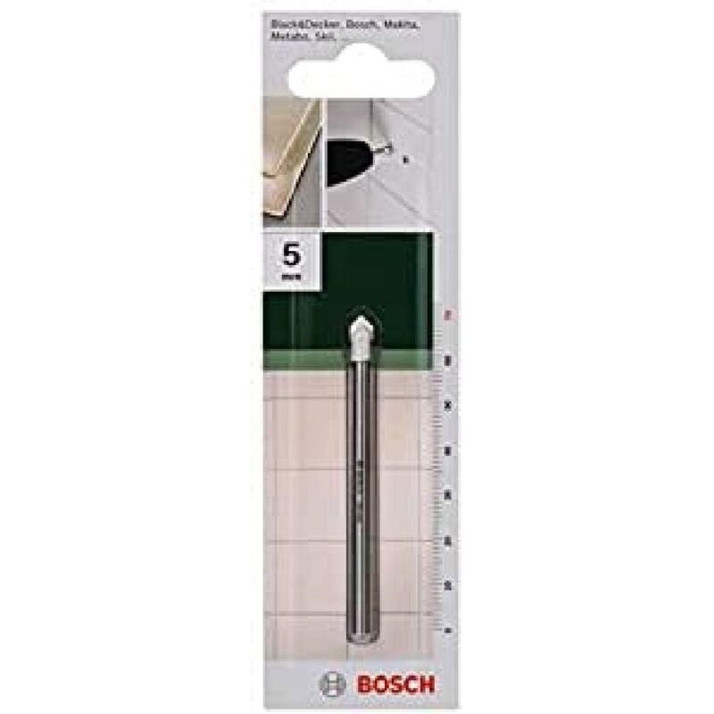 BOSCH - PUNTA PER PIASTRELLE 5MM LUNGHEZZA TOTALE 70MM CON ALBERINO CILINDRICO Perforazione pilota precisa in piastrelle Nessun raffreddamento richiesto Perforazione rapida con bordi diamantati Utilizzo a basse velocità e senza impatto