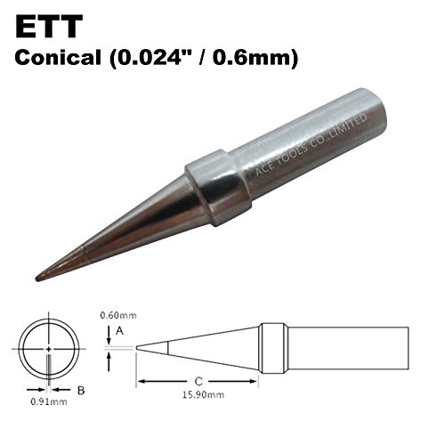 ETT - Punta conica per saldatura ad ago fine, 0,6 mm, pre-stagnata, punte resistenti, per piccoli punti di saldatura precisi, 0603 SMT, parti SMT, TSSOP 0402