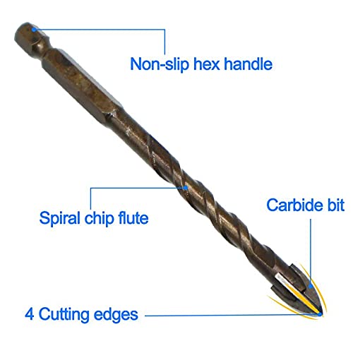 Punta da trapano, 1pc 6/8/10/12 mm esagonale punte da trapano Set di fori per cemento in ceramica di vetro Lega dura per ceramica, granito, piastrelle, pietra, legno, plastica, muro di (12mm)