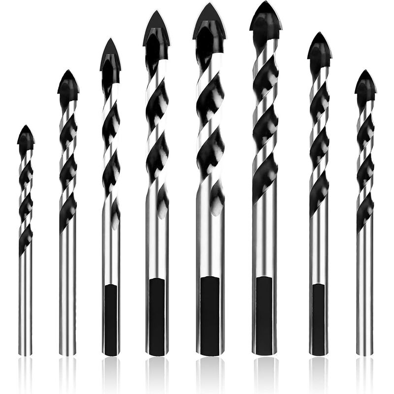 CARBURO DI TUNGSTENO - : carburo di tungsteno più spesso e di qualità superiore con una testa rinforzata che impedisce la rottura delle punte. La superficie è trattata antiruggine, con buona resistenza all'abrasione ed estrema durezza, lunga durata. 【MANIGLIA A TRIANGOLO】: il design della fessura di tipo U consente una rapida rimozione della polvere di perforazione. Il design dell'impugnatura triangolare, un funzionamento più stabile, nessuno scivolamento e nessun graffio, non danneggerà lo smalto. (il tagliente e il foro sono lisci e completi, senza lasciare sbavature) 【TAGLIO PERFETTO】: la punta forte in carburo di tungsteno con design appuntito può penetrare facilmente in vari materiali, facile da individuare, forare in modo stabile, veloce velocità, non infrangere il confine, apertura pulita e regolare. (Design della filettatura rotante, foratura ed evacuazione dei trucioli più agevolmente) 【VARIE DIMENSIONI: 8 punte da trapano PCS impostate con 7 diverse dimensioni (1*3 mm, 2*4