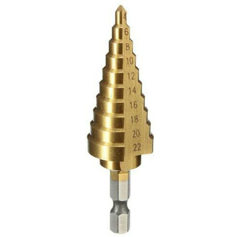 Questa punta per trapano a cono da 4-22 mm è adatta per tagliare fori in una varietà di materiali tra cui acciaio, ottone, legno, plastica, ecc. Caratteristiche: Prodotta in acciaio ad alta velocità per una maggiore durata e potenza di taglio. Rivestito in titanio per ridurre l'attrito e il calore. Incrementi del passo di 2 mm. Rispetto alla normale punta elicoidale, non è facile da rompere. Appositamente progettato per foratura di precisione di fori in alluminio, ottone, rame, plastica, acciaio e legno. Specifiche: Materiale: acciaio rapido Colore: oro Dimensioni: 4-22 mm (6,8,10,12,14,16,18,22 mm) Dimensioni gambo: 25 * 6 mm / 0,98 * 0,24 pollici Lunghezza totale: 75 mm / 2,95 pollici Peso del pacchetto: 50 g / 1,76 once Dimensioni del pacchetto: 80 * 30 * 30 mm / 3,15 * 1,18 * 1,18 pollici