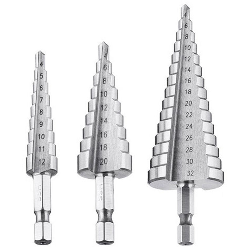 Foresta sfalsata, Punta da trapano per fresa in metallo 4PCS 4-12/20/32mm Punta per trapano a gradino Svasatore in acciaio Trapano a triangolo conico con rivestimento in titanio Punta per cacciavite per acciaio/legno/ottone/plastica/PVC [ Heavy Duty & Antiruggine] Realizzato in HSS di alta qualità, taglia rapidamente i materiali sottili. L'HSS offre una durata estrema e le punte del trapano sono antiruggine. Allo stesso tempo, la nostra punta da trapano è adatta con un cacciavite elettrico [Applicazione] Punta da trapano a gradino adatta per fai da te, casa e costruzione. È molto adatto per praticare fori in una varietà di materiali come acciaio/ottone/legno/plastica/lastra di ferro sottile/materiali in alluminio/lastra isolante/lastra in PVC, ecc. Adatto solo per normali piastre in alluminio, ferro e acciaio (lo spessore non può superare i 4 mm, la durezza è inferiore a 25HRC), non per l'acciaio inossidabile < /p> [Punta elicoidale] Con La punta elicoidale 6542 può preforare i