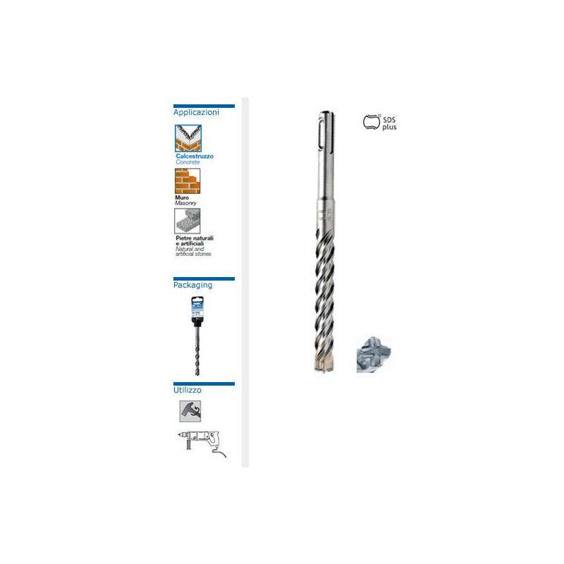 Punta per trapano a martello SDS-PLUS 03167 - 4 eliche e 4 taglienti - ideale per muri, calcestruzzi, pietra, ecc.Disponibile in diverse misure.