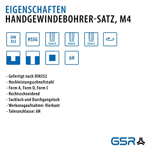 Punta per trapano professionale per filettatura M4 HSSG set 3 teilig, testa trapano a mano