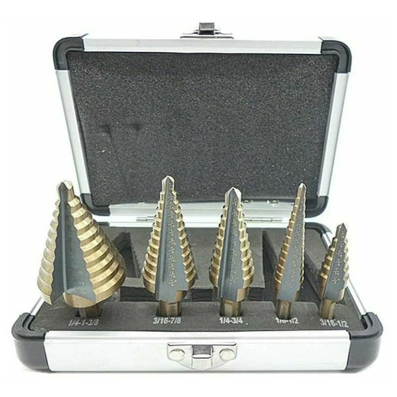 Materiale: realizzato in acciaio HSS di alta qualità e rivestito in titanio, per ridurre l'attrito e il calore. Il punzone di centraggio è realizzato in acciaio legato resistente agli urti e la sua durata è decuplicata. Comodo da posizionare prima di forare e rompere il vetro per sfuggire. Il rivestimento in titanio consente di tagliare senza sforzo lamiere di acciaio, lastre di alluminio, rame, plastica e pannelli di legno. Può sbavare automaticamente i fori per mantenere pulito il trapano. 47 code in 5: il set di punte contiene cinque punte standard che possono sostituire 47 punte singole. Il punzone di centraggio offre un impatto automatico, potente e caricato a molla mediante tappo di regolazione. Impugnatura a sgancio rapido 1/4 HEX per un serraggio più facile. Questa è la nuova fresa per fori per punte da trapano con punta in titanio HSS Steel, realizzata in acciaio HSS di alta qualità, rivestita in titanio per ridurre l'attrito e il calore. Perfetto per praticare fori in vari