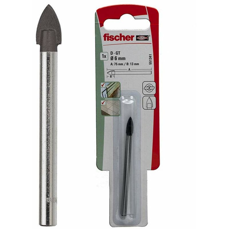Punta per vetro pvpunta d-gt professionale con alette placcate al carburo per vetro e ceramichevantaggi: placchetta punta realizzata in carburo con angolo a 120°. Placchetta resistente alle alte temperature. Punta di alta qualità. Per forature precise. Bagnare durante la foratura. Utilizzare bassa velocità. Del mandrino. Applicazioni: idonea per forature in: vetro piastrelle ceramica specchi porcellana specifiche tecniche: lunghezza totale - l - [mm]: 60, contenuto: 2 punte, lunghezza utile: 10, attacco per elettroutensili: ⌀ 3,5, diametro foro - d0 - [mm]: 4, riferimenti:ean: 4048962287004codice fischer: 551342.