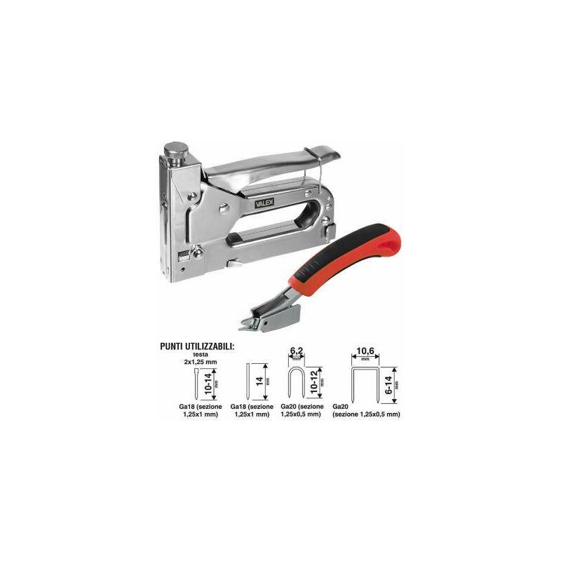 PUNTATRICE CHIODATRICE MANUALE 41 PLUS Codice: 1455642 Regolazione veloce della profondità di inserimento senza l'utilizzo di strumenti Blocco della maniglia Inclusi 500 punte da 8mm, 500 punte a U da 12mm e 500 chiodi da 10mm Strumento per la rimozione delle punte incluso La puntatrice-chiodatrice-levapunti-graffettatrice manuale con punte e chiodi Valex è un'ottima scelta per chi cerca un prodotto versatile e di qualità. Grazie alla regolazione veloce della profondità di inserimento senza l'utilizzo di strumenti, è possibile utilizzarla con grande facilità e precisione. Inoltre, il blocco della maniglia garantisce un'ottima stabilità durante l'utilizzo. Il kit include 500 punte da 8mm, 500 punte a U da 12mm e 500 chiodi da 10mm, oltre ad uno strumento per la rimozione delle punte.