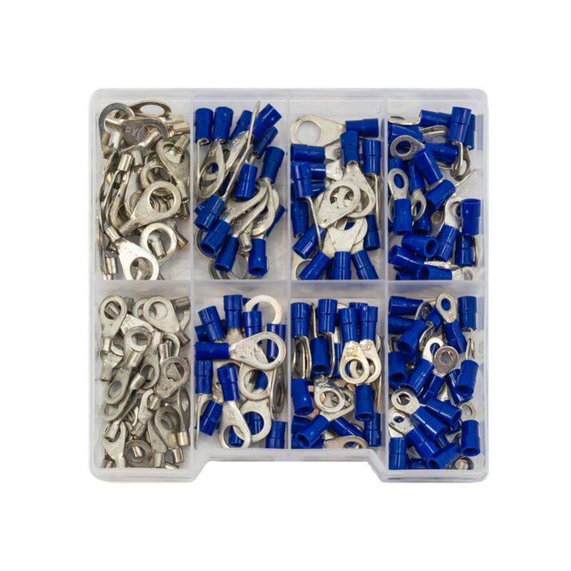 Il kit contiene: • 01231 - Terminale ad anello in rame stagnato, non isolato, 2,5/6, range 1,5-2,5mm2, 30 pezzi. • 01237 - Capocorda ad anello in rame stagnato, non isolato, 2,5/8, scala 1,5-2,5 mm2, 25 pezzi • 00219 - Capocorda ad anello in rame stagnato isolato, 2,5/4, PVC, scala 1, 5-2,5 mm2, blu, 25 pezzi • 00225 - Capocorda ad anello isolato in rame stagnato 2,5/5, PVC, scala 1,5-2,5 mm2, blu, 25 pezzi.• 00231 - Capocorda ad anello isolato in rame stagnato 2,5/6, PVC, scala 1,5-2,5 mm2, blu, 20 pezzi.• 00237 - Capocorda ad anello isolato in rame stagnato, 2,5/8, PVC, portata 1,5-2, 5 mm2 2,5 mm2, blu, 30 pz.• 00243 - Capocorda ad anello isolato in rame stagnato, 2,5/10, PVC, range 1,5-2,5 mm2, blu, 15 pz.**