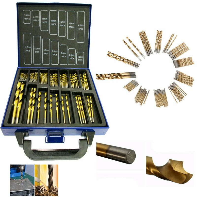 Pratico e comodo set per professionisti e amanti del fai da te composto da ben 99 punte professionali HSS per trapano per fori su alluminio, legno, ferro. Ideale per chi �� nel settore edile ma anche per piccole riparazioni in casa. Nella valigetta in ferro che riceverete troverete ben 99 punte dale misure pi�� comuni e richieste a partire da 1.5 mm fino a 10mm per fori su svariati oggetti, siano essi infissi in alluminio, legno, ferro. Misure e quantit�� delle punte nella confezione. 16 x 1.5mm HSS Drills 16 x 2mm HSS Drills 15 x 2.5mm HSS Drills 10 x 3mm HSS Drills 10 x 3.2mm HSS Drills 8 x 3.5mm HSS Drills 8 x 4mm HSS Drills 3 x 4.5mm HSS Drills 3 x 5mm HSS Drills 2 x 5.5mm HSS Drills 2 x 6mm HSS Drills 2 x 6.5mm HSS Drills 2 x 8mm HSS Drills 2 x 10mm HSS Drills