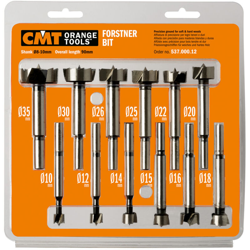 CMT 537.000.12 Set di Punte ad Attacco Cilindrico Tipo Forstner, Grigio, Set di 12 Pezzi Style: Single
