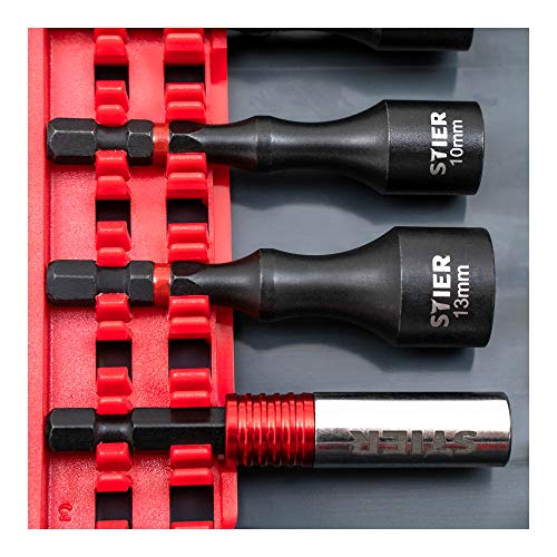 Set di punte per avvitatore a batteria STIER, 42 pezzi, robusto portapunte magnetico, funzione intercambiabile, adattatori e bussole, scatola di trasporto di alta qualità, per artigiani, montaggio