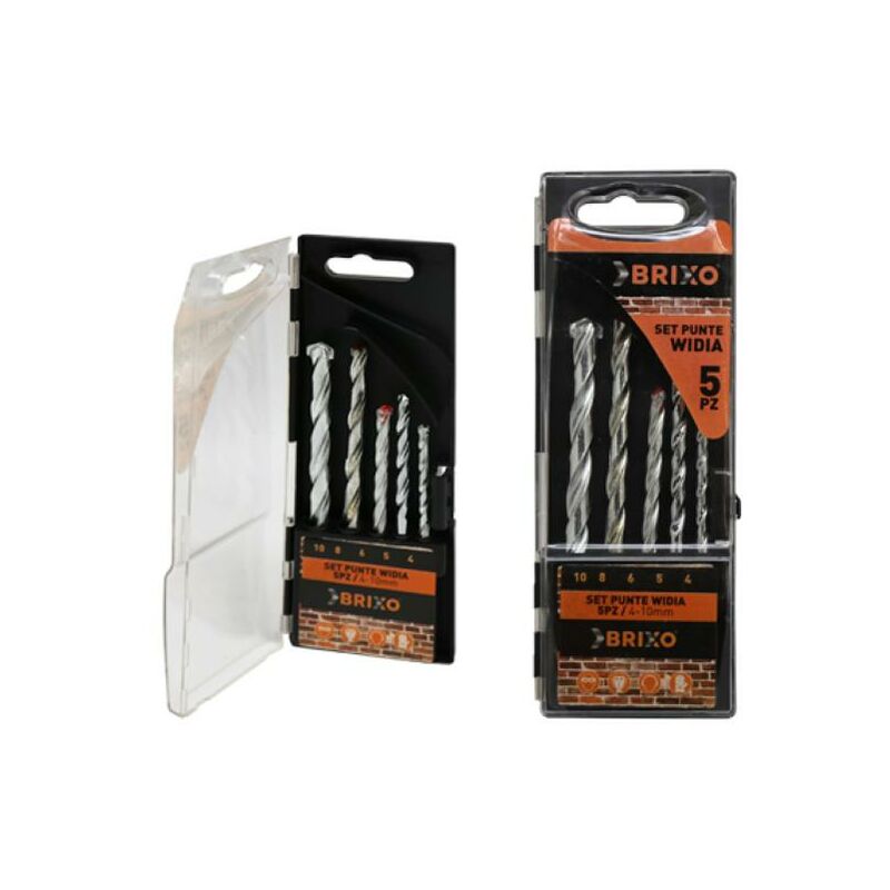 Set punte 5 pezzi: 4-5-6-8-10 mm. Placchetta al carbonio di Tugsteno, Roto-percussione, per calcestruzzo, cemento, mattoni. DIN 8039
