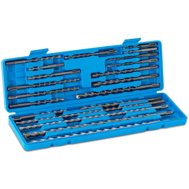 Punte trapano Set Le punte per calcestruzzo ACC-HDP-02 di MSW sono gli strumenti perfetti per chiunque voglia eseguire dei fori su calcestruzzo, muratura o pietra! Che tu sia un professionista o un dilettante, le punte SDS Plus svolgono perfettamente il loro lavoro e, grazie al design convenzionale e al filetto di fissaggio, sono adatte a tutti i trapani SDS/SDS Plus di Bosch, MSW, Hilti, Milwaukee, Makita, Dewalt, etc.! Le 20 punte per pietra con diversi diametri e altezze permettono di lavorare in maniera flessibile. Grazie alla loro semplicità di utilizzo, è possibile sostituire le punte con grande facilità. Il design delle punte ne previene l'incastro e la rottura, assicurando quindi un risultato ottimale e preciso. Le punte per martello perforatore realizzate in lega YG8C e acciaio al carbonio 40CR sono particolarmente stabili e durevoli. Dettagli tecnici Diametro carotatrice: 5 - 20 mm Altezza carotatrice: 110 - 450 mm Grado di durezza: HRC50 Filetto di fissaggio: albero dritto
