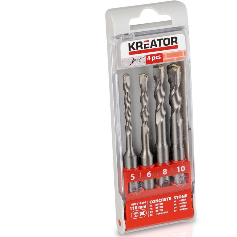 Trapani per calcestruzzo SDSLunghezza 110 mm .Diametri delle punte inclusi nel set: 5, 6, 8 e 10 mm.