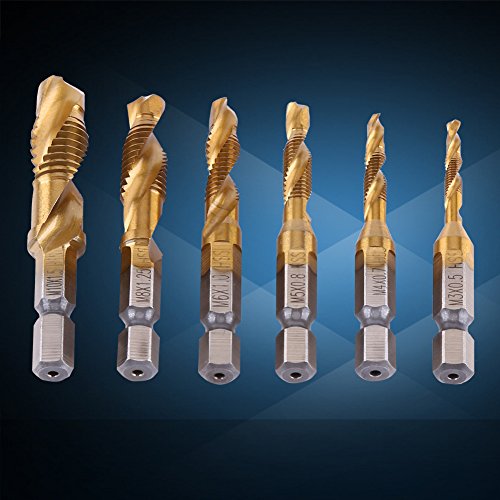Punte combinate per trapano e rubinetto, set di utensili per rubinetti per viti per utensili per filettatura 6 pezzi per M3, M 4, M5, M6, M8, M10