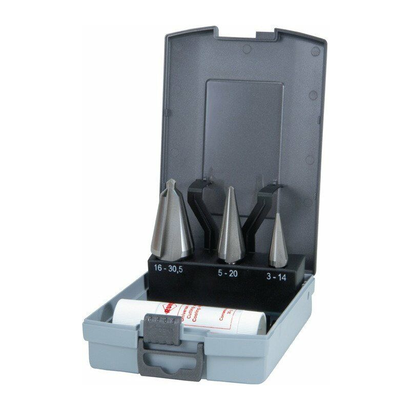 Ogni gamma di perforazione a 1 pezzo 3-14, 5-20, 16-30,5 mm · 1 la lass d'incollare 30 g · in cassetta di plastica Altre caratteristiche tecniche: · Contenuto: 4 parti · Imballaggio: cassetta di plastica ABS · Ø: 3-14 / 5-20 / 16-30,5mm · Materiale da taglio: HSS