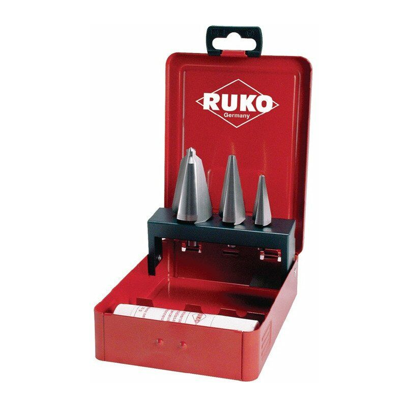 Con 3 taglienti · ogni gamma di perforazione a 1 pezzo 3-14, 5-20, 16-30,5 mm · 1 la lass d'incollare 30 g · in cassetta metallica Altre caratteristiche tecniche: · Contenuto: 4 parti · Imballaggio: cassetta metallica · Ø: 3-14 / 5-20 / 16-30,5mm · Materiale da taglio: HSS
