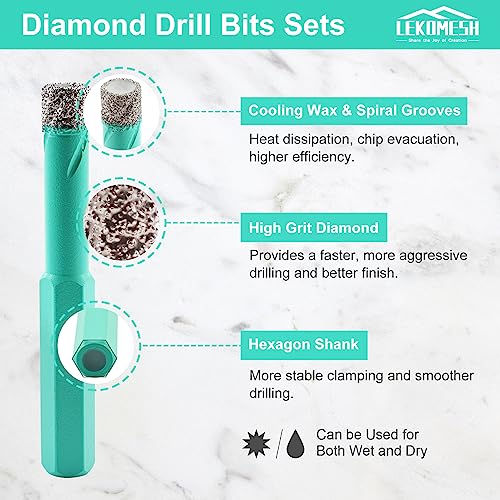 Set di Punte Diamantate - 5pcs 6/6/6/8/10MM Punte Trapano Piastrelle con Gambo Esagonale per Ceramica Porcellanato Marmo Granito Pietra Artificiale Quarzo,LEKOMESH