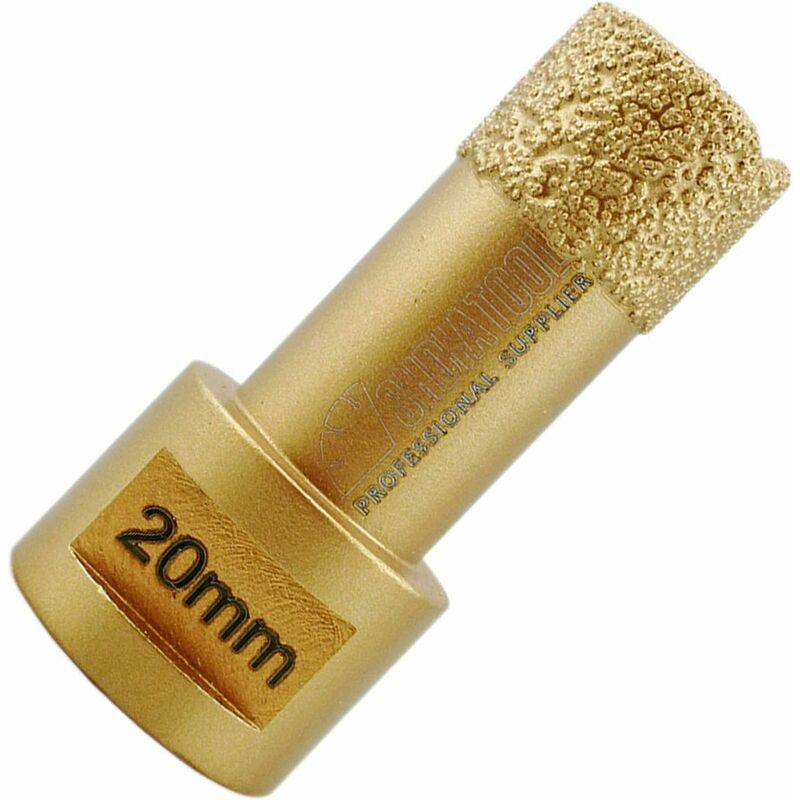 1pz M14 punte per trapano saldate sottovuoto diametro filettatura 20 mm Diametro 20 mm, lunghezza totale 60 mm, altezza diamante 15 mm, attacco M14 Foratura a secco o a umido per porcellana, porcellana, granito, marmo, pietra, muratura, mattoni ... La tecnologia di brasatura sottovuoto garantisce una maggiore durata, una perforazione rapida e regolare L'alto tasso di esposizione del diamante consente una perforazione più rapida e più aggressiva, riducendo al minimo eventuali rotture e rendendola sicura per l'operatore
