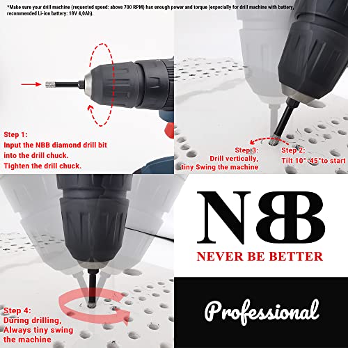 Durata di foratura durevole e stabile, una punta diamantata NBB VB consente una durata molto più lunga rispetto alla zincatura (quasi 10 volte). RISPARMIA i tuoi soldi e CONSENTI di crearne di più. (Puoi perforare molto di più bagnato).